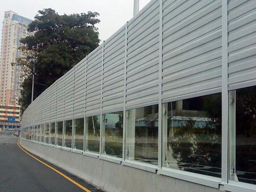 隔音墻(聲屏障)主要用于高速公路、高架復(fù)合道路、城市輕軌地鐵等交通市政設(shè)施中的隔聲降噪、控制交通噪聲對附近城市區(qū)域的影響,也可用于工廠和其它噪聲源的隔聲降噪。分為純隔聲的反射型聲屏障,和吸聲與隔聲相結(jié)合的復(fù)合型聲屏障,后者是為更有效的隔聲做出來的。大多數(shù)的聲屏障都選用吸聲和隔聲混合型的產(chǎn)品,該型產(chǎn)品的特點是對道路噪聲的產(chǎn)生和傳遞特征有針對性地控制。如汽車與道路摩擦聲或機(jī)車與軌道摩擦聲在道路下部,聲音有通過屏體上部繞射的特征,所以在設(shè)計上采用上下吸聲,中間隔聲的結(jié)構(gòu),這樣可以有效地減弱噪聲的繞射;聲屏障的中間使用透明的反射型隔聲板,能有效地中斷聲波的傳播途徑;同時也為司機(jī)和居民提供一個開闊的視野環(huán)境。建筑聲學(xué)領(lǐng)域,通過聲學(xué)治理,控制混響時間及室內(nèi)聲環(huán)境,滿足專業(yè)場館要求。